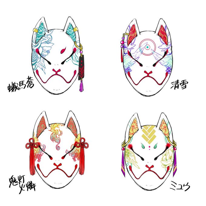 茶紅摸 そう言えば Pixivさんにこの狐面の描き方的なものを紹介して頂けたのはとても嬉しかった